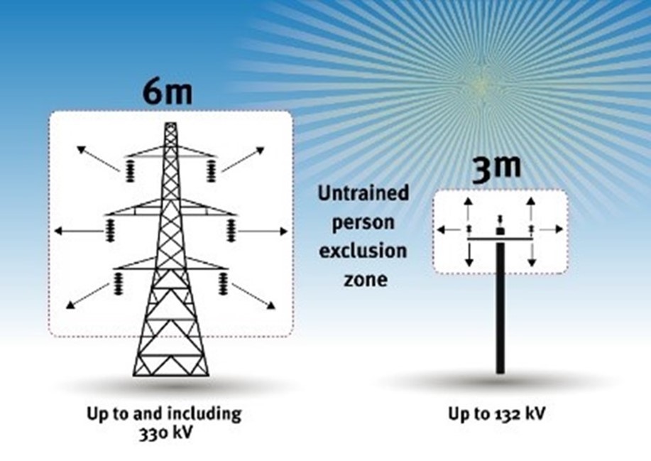 - something the person is holding, or is in contact with, coming too close to the powerlines (within the exclusion zone),